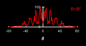 The magnetic flux through the red area is chosen such that for a single particle the shift in the diffraction pattern due to the Aharonov-Bohm effect is 180°.